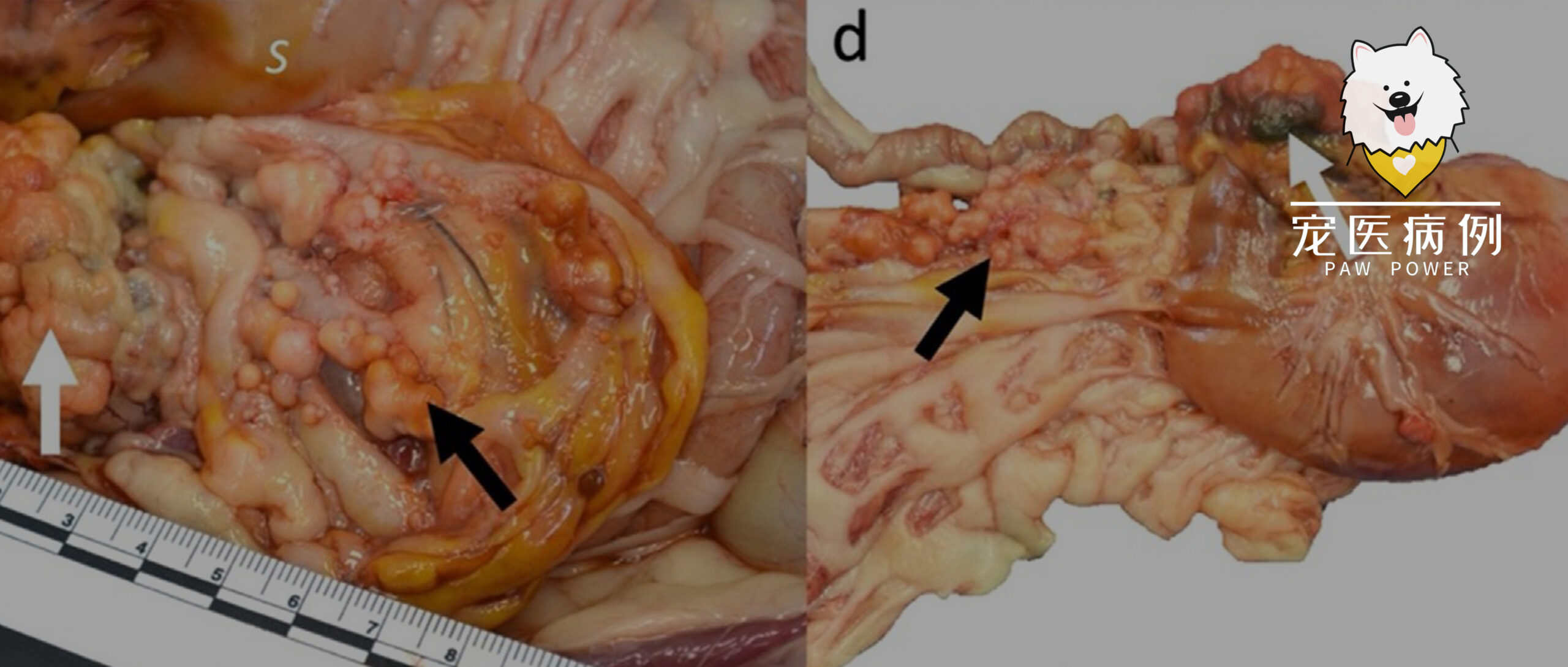 在人类中,肉瘤最常见于胃肠道间质瘤、脂肪肉瘤和平滑肌肉瘤,这些都与不良预后有关[11,12]。在狗身上,一个小病例系列发现肉瘤可继发于原发性脾脏血管肉瘤(n=5)、软组织血管肉瘤(n=1)和肩胛骨OS(n=1)。这些狗都出现了腹膜结节,一例还出现了胸膜结节[13]。