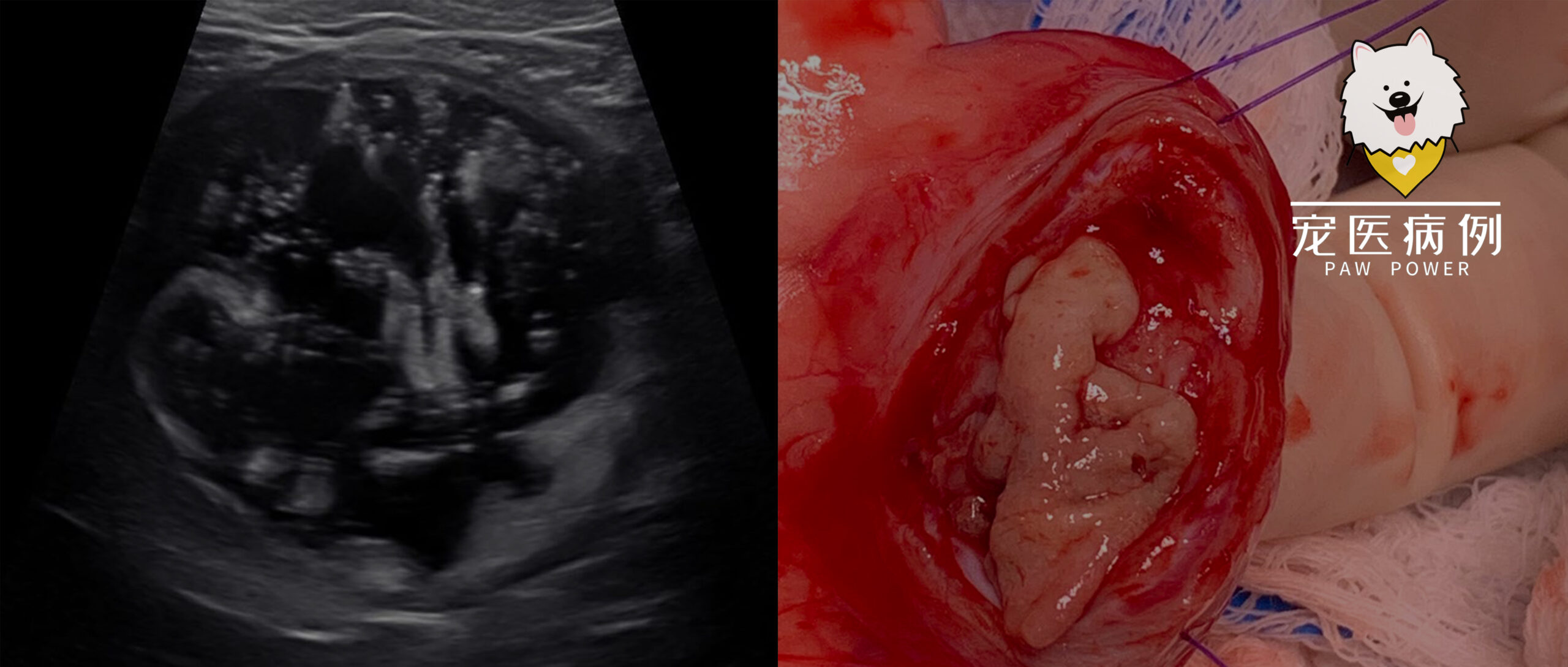 ↑ 腹部超声显示明显的膀胱内悬浮回声碎片。