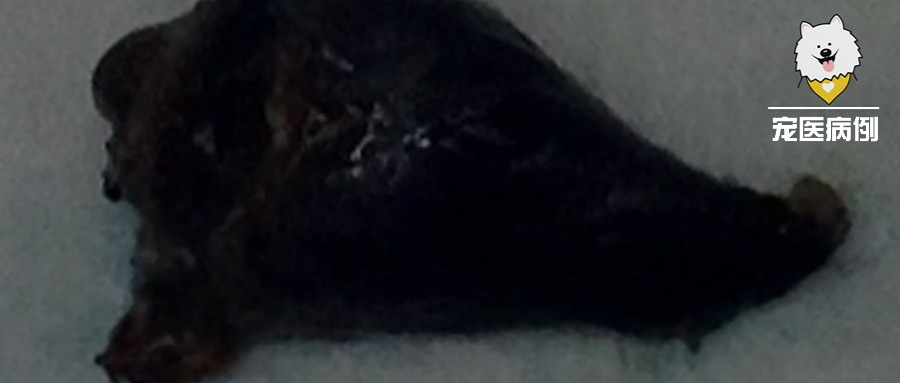 术中告知主人后,主人选择仅切除左侧叶及其相关结节,保留右侧叶。切除左侧叶后进行了拍照,以显示异常颜色(下图)。