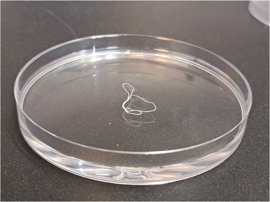 图8. 从腹腔中分离出的犬心丝虫Dirofilaria repens成虫标本。