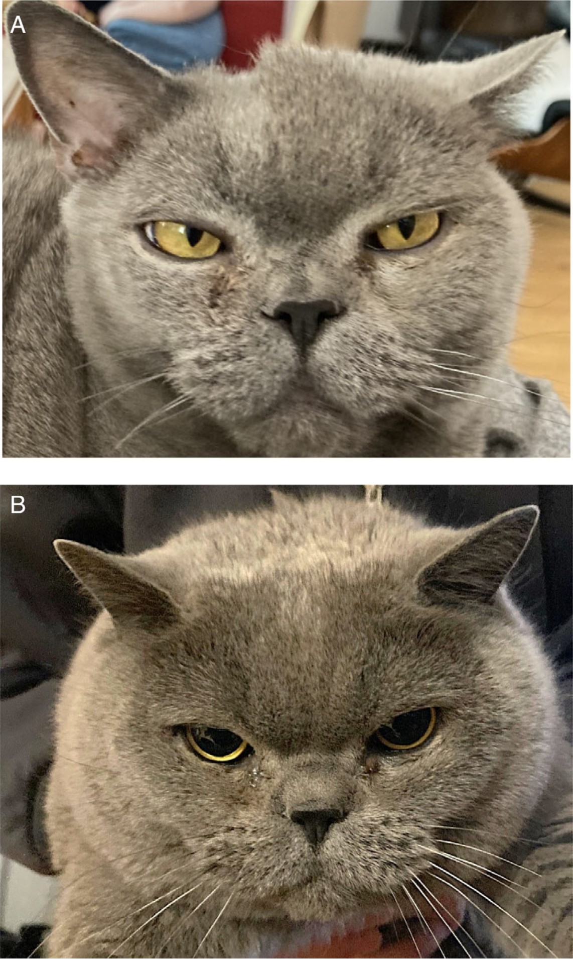 本例为9岁英短,右眼进行性眼球突出12个月,无疼痛、无眶周肿胀,与既往颧腺囊肿“颧弓区软性肿胀”描述不同,提示颧腺病变可仅表现为眼球移位,易被误诊为单纯眶内肿瘤。