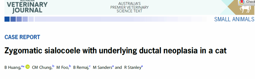 文献来源:Huang B, Chung CM, Foo M, Remaj B, Sanders M, Stanley R. Zygomatic sialocoele with underlying ductal neoplasia in a cat. Aust Vet J. 2025 Oct;103(10):655-662.