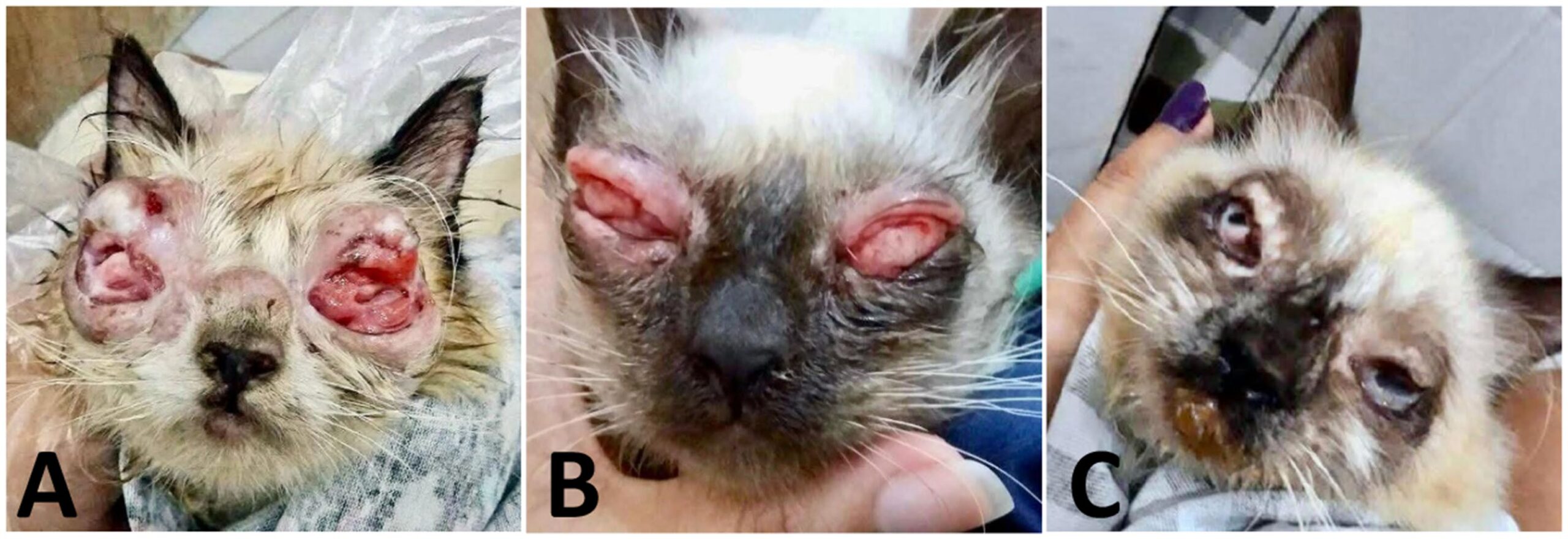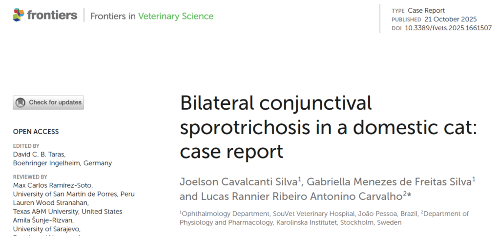 文献来源:Silva JC, de Freitas Silva GM, Carvalho LRRA. Bilateral conjunctival sporotrichosis in a domestic cat: case report. Front Vet Sci. 2025 Oct 21;12:1661507.