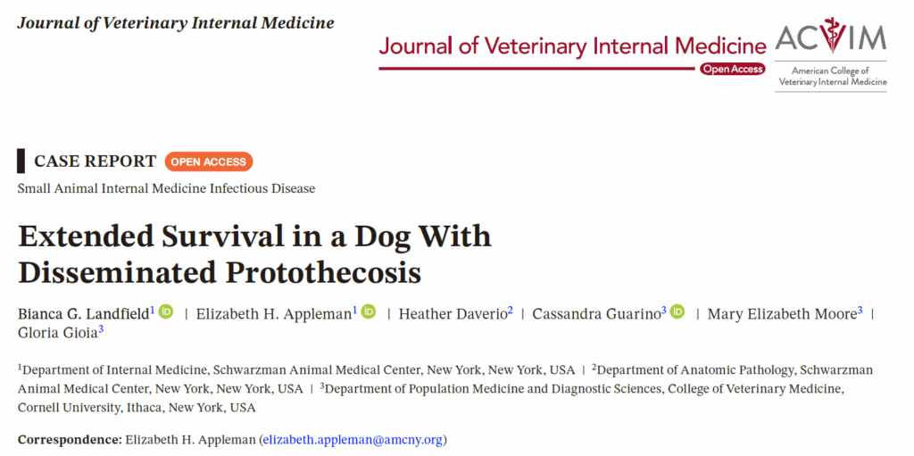 文献来源:Landfield BG, Appleman EH, Daverio H, Guarino C, Moore ME, Gioia G. Extended Survival in a Dog With Disseminated Protothecosis. J Vet Intern Med. 2025 Sep-Oct;39(5):e70231.
