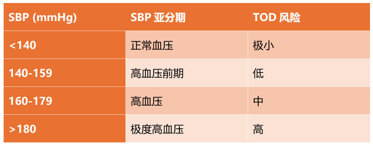 表2. 根据ACVIM关于犬猫系统性高血压的识别、评估和管理共识声明指南,收缩压(SBP)根据TOD风险进行分类。