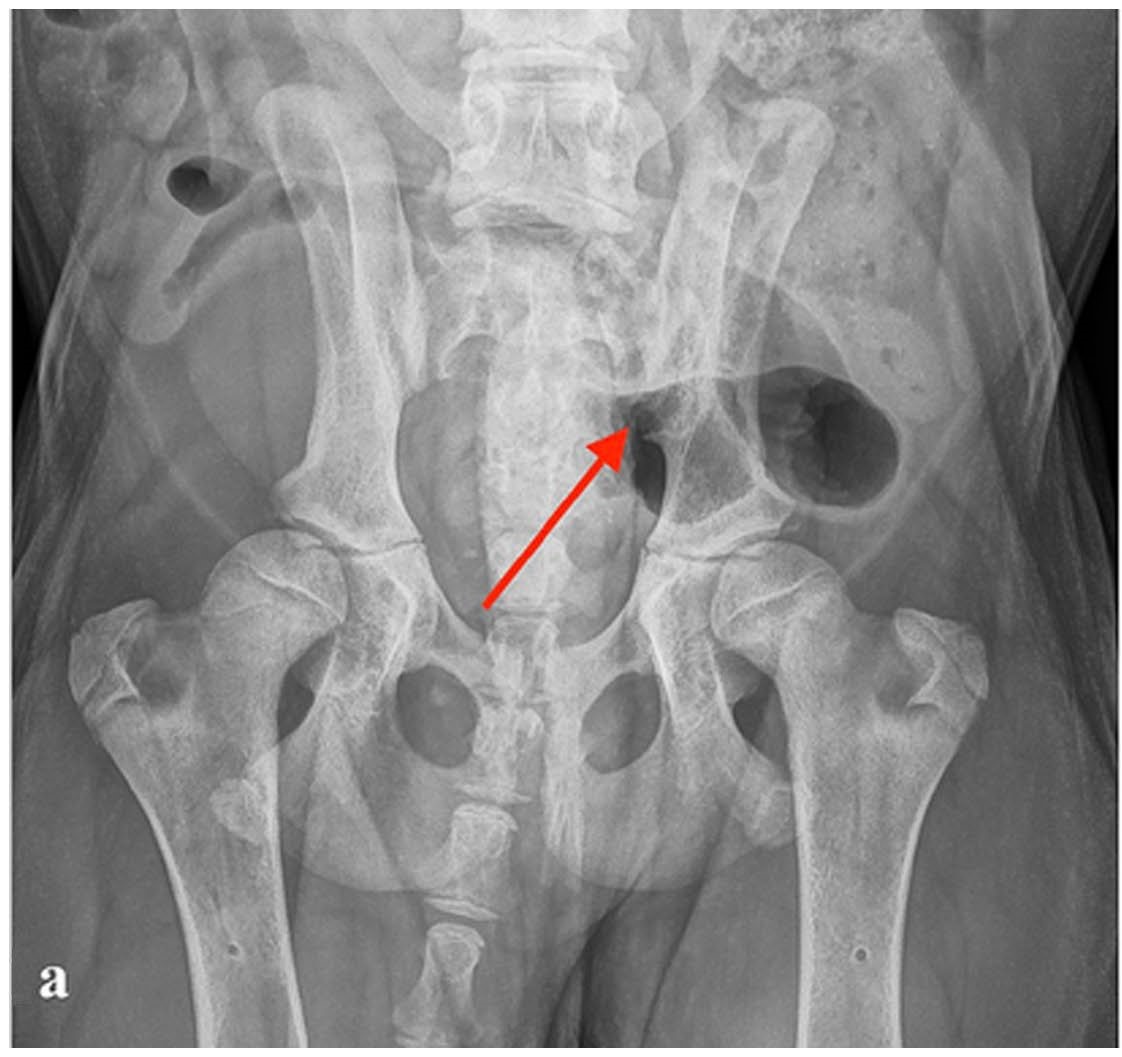 此外,该犬还存在轻度双侧髋关节松弛,但并未被认为是导致临床症状的主要原因。尽管髋关节发育不良是后肢步态异常和疼痛的可能鉴别诊断,但本病例的临床症状通过保守治疗迅速缓解,表明骶髂关节病变是主要病因。